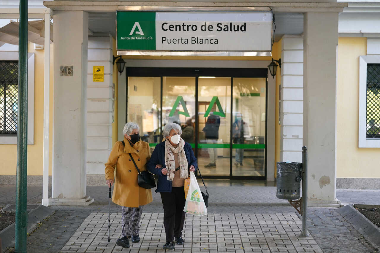 Varias persoans utilizan la mascarilla en el interior de los centros de salud por el repunte de gripe y donde desde hoy miércoles, el Ministerio de Sanidad decidirá que todas las comunidades autónomas tienen que acatar la medida de mascarilla obligatoria en centro sanitarios a 10 de enero de 2024 en Málaga, Andalucía//Álex Zea.