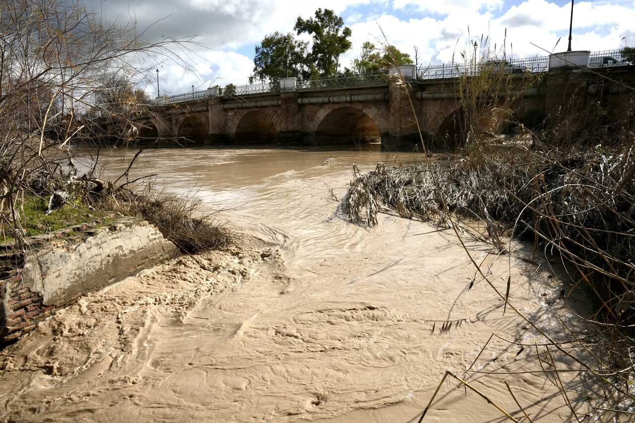 Vista general de la crecida del río Genil a su paso por la localidad de Écija. Imagen de archivo.