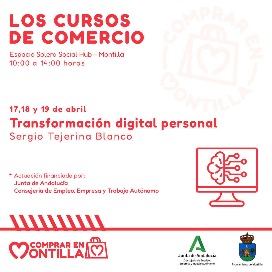 La primera edición de los “Cursos de Comercio” comenzará el próximo lunes 17 de abril para finalizar el miércoles 19 abril, en horarios de mañanas: desde las 10:00 h hasta las 14:00 h en el Espacio Solera LAB. La actividad estará desarrollada por Sergio Tejerina Blanco, experto en transformación digital, y organizada por el Área de Comercio del Ayuntamiento de Montilla.