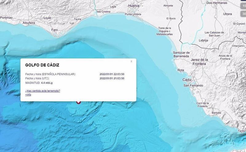 Un terremoto de magnitud 4,4 se ha registrado en la noche de este sábado en el golfo de Cádiz sin que se hayan notificado hasta el momento daños personales ni materiales, según informa en un comunicado el servicio Emergencias 112.