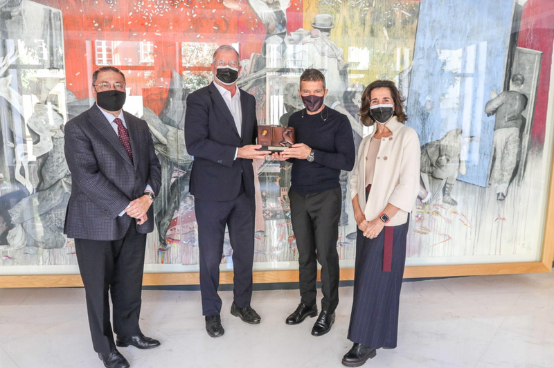 Debido a la pandemia del coronavirus, no se ha podido celebrar una ceremonia de entrega en un evento como en anteriores ediciones, y a la entrega han acudido, además de Agustí, el miembro de la entidad y consejero de Damm, Ramon Agenjo, y la secretaria general de Sport Cultura Barcelona, Rocío de Aguilera.