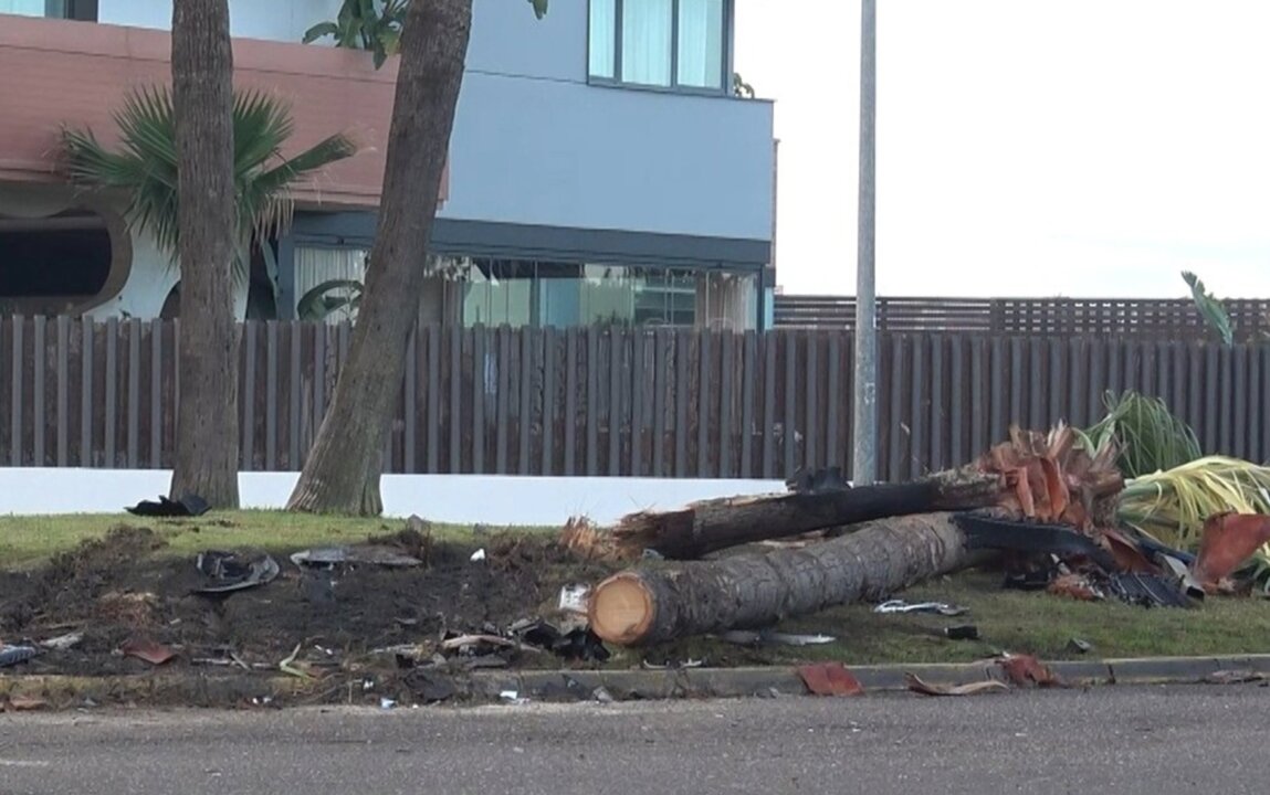 Palmera rota por el accidente.