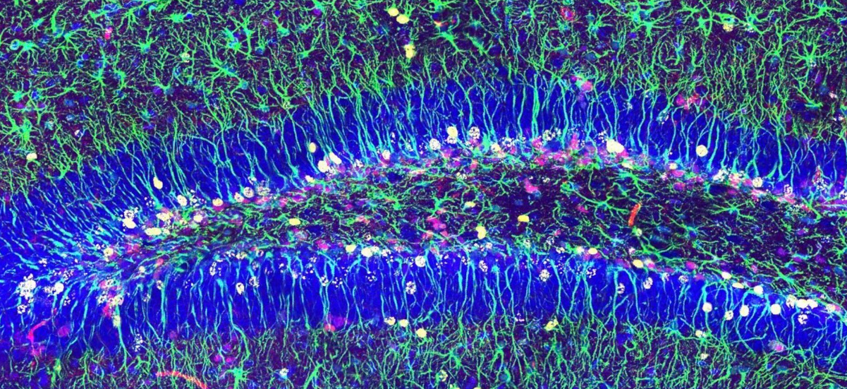 Imagen de microscopía confocal mostrando las células madre neurales del hipocampo