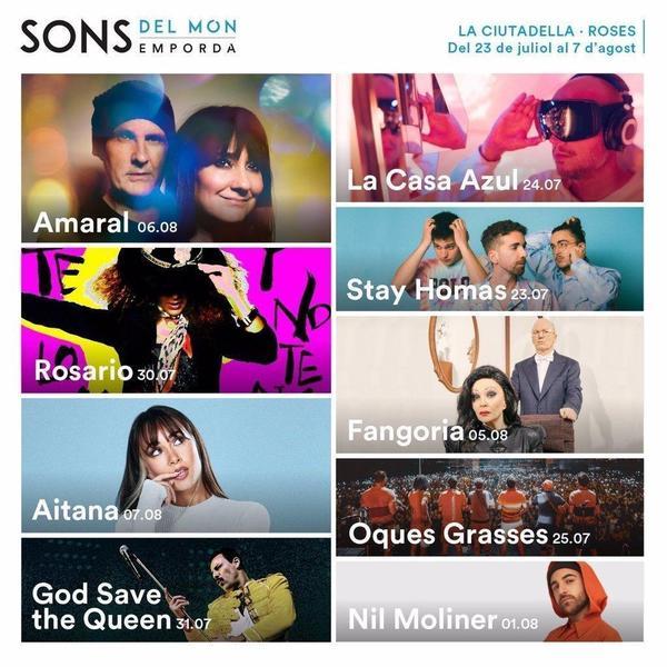 El XIV Festival Sons del Món de Roses (Girona), que se celebrará del 23 de julio al 7 de agosto en la Ciudadella de la localidad, tendrá en su cartel a Amaral, Rosario, Stay Homas, Aitana y Fangoria.