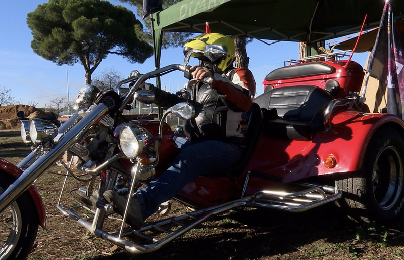 'El Abuelo', de 71 años vecino de Arganda del Rey (Madrid), ha llegado a la antigua hípica militar de Valladolid en la tarde de este domingo subido a su motocicleta de tres ruedas roja, a la que bautizó hace años como 'Dimaquineta'.