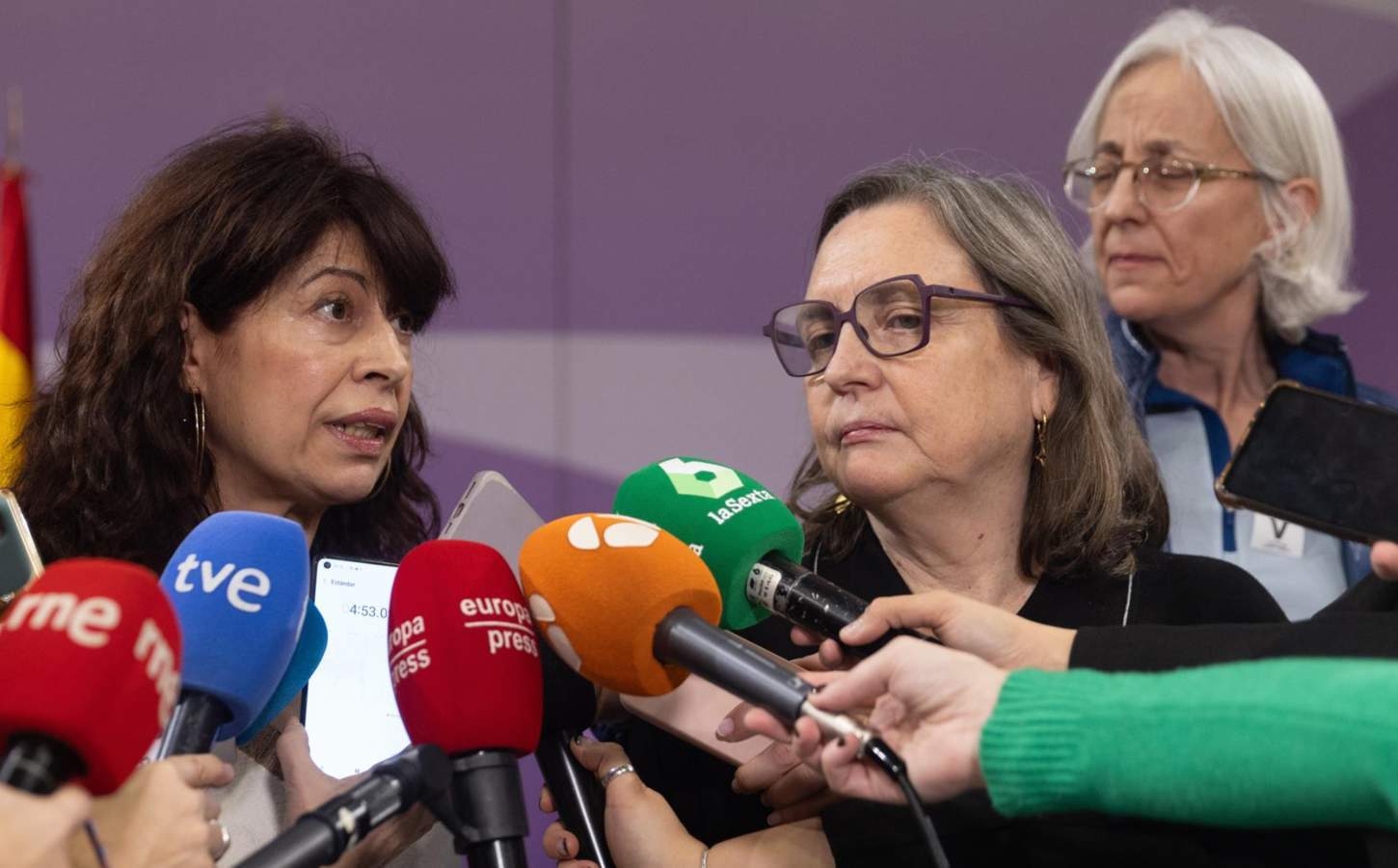 La ministra de Igualdad, Ana Redondo (i), atiende a medios tras reunirse con CIMA,