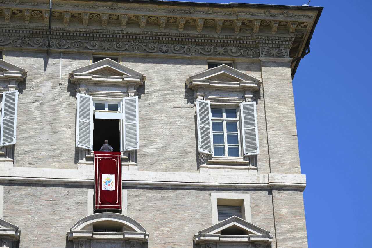 **NO LIBRI** Italy, Rome, Vatican, 2026/4/26 .Pope Leo XIV waves from the window of the apostolic palace overlooking St. Peter's square during the Regina Coeli prayer in The Vatican Photograph by VATICAN MEDIA / Catholic Press Photo