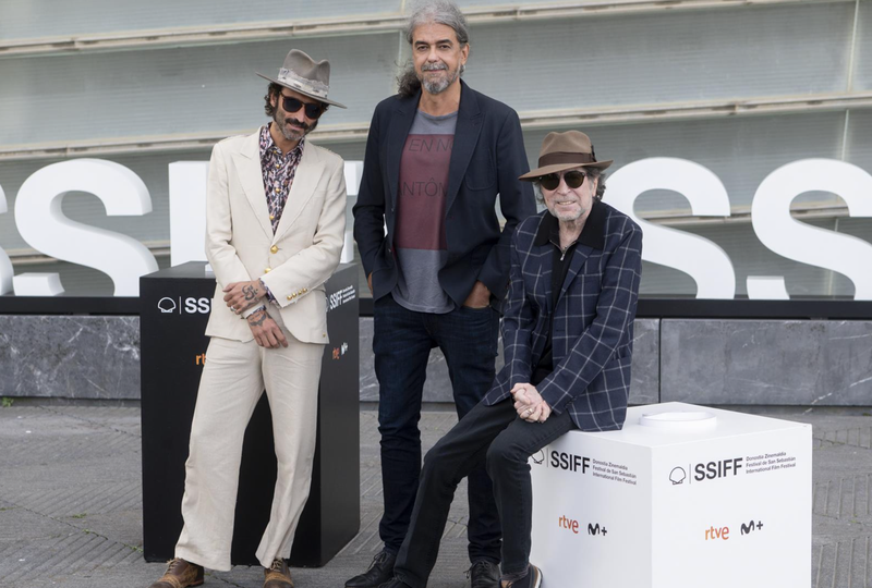 En rueda de prensa en el certamen donostiarra, León de Aranoa y Sabina, junto al también músico Leiva y los productores del documental Francisco Cordero, Patricia de Muns y Sergi Reitg, han presentado este documental, fruto de 13 años de grabación del cineasta al veterano artista.