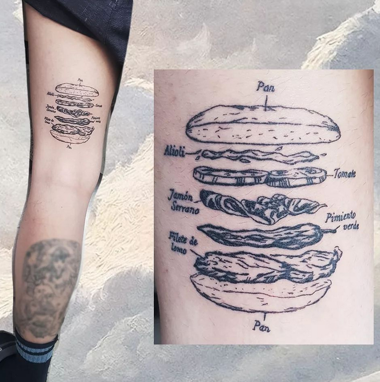 Esta vez, uno de ellos ha causado más polémica de lo normal. Y es que se ha hecho viral un tatuaje de un serranito realizado en Sevilla. El tatuaje consiste en una explicación de lo que lleva el alimento, pan, filete de lomo, pimiento verde, jamón serrano, tomate, alioli y para cerrarlo, pan.