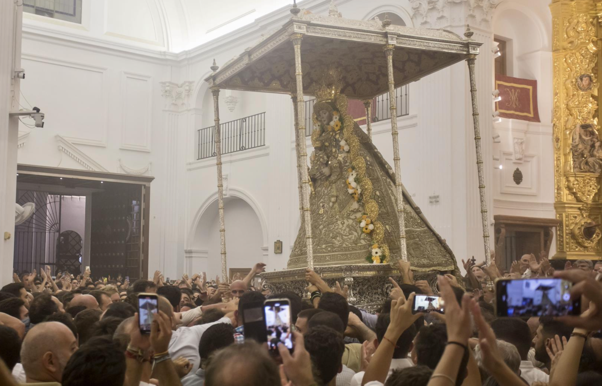 Cabe recordar que en esta romería el paso cuenta con una nueva estructura interna después de que el año pasado se rompiera el banzo delantero izquierdo en plena peregrinación e hizo que se adelantara la entrada de la Virgen en el Santuario. La procesión se tuvo que suspender sobre las 06.15 horas, apenas tres horas después de iniciarse y, tras ello, la Hermandad Matriz invitó a las hermandades que quedaba por visitar a acercarse al santuario para presentar su Simpecado a la Virgen entrando por la puerta principal por orden de llegada.