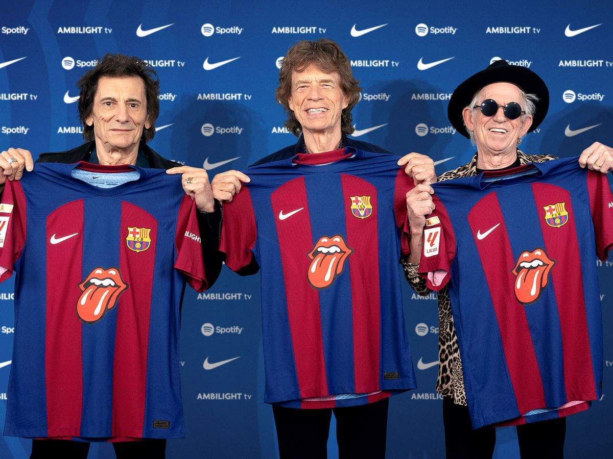 Los Rolling Stones con su camiseta del Barcelona