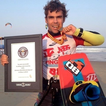 El brasileño Reno Romeu completa una pirueta imposible de Kitesurf