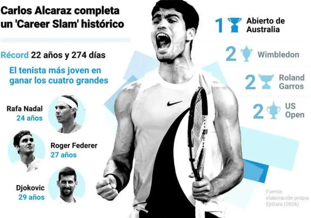 El triunfo tuvo un dato extra que elevó aún más el momento: Alcaraz se convirtió en el más joven en conseguirlo en la historia del tenis. Con el trofeo de Melbourne ya en sus manos, el siguiente gran objetivo posible aparece de inmediato: intentar ganar los cuatro en un mismo curso, algo reservado a muy pocos.