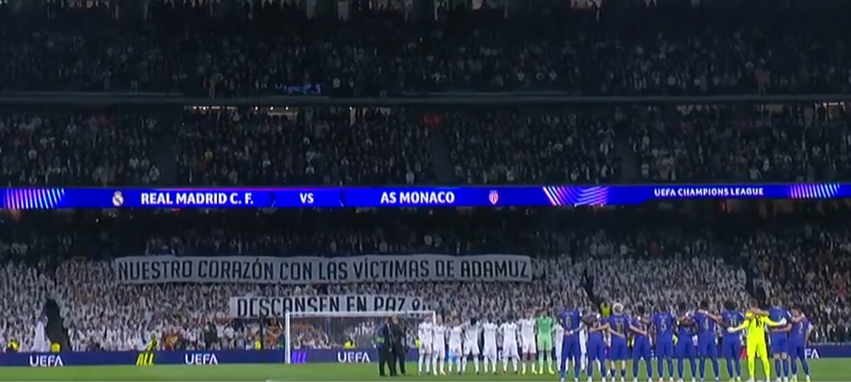 La muestra más reciente ha llegado desde un escenario de máximo nivel: el Santiago Bernabéu, en plena Champions League. Un gesto que, por su alcance y visibilidad, ha reforzado el mensaje de duelo compartido más allá de fronteras.