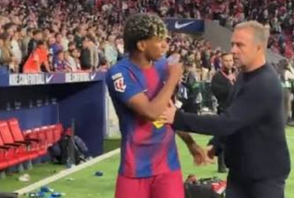 El enfado de Lamine se confirmó al llegar a la banda, donde se encontró con Hansi Flick. El técnico intentó saludar colocándole una mano en el pecho, pero el extremo evitó el saludo y le dijo algo con un tono que evidenciaba molestia, para acto seguido dirigirse directamente al túnel de vestuarios, sin que Flick insistiese en acercarse.