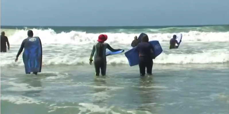 Un numeroso grupo de mujeres estadounidenses, la mayoría de ellas jubiladas, han decidido formar un club de 'Boogie Boarding' para divertirse en el agua.