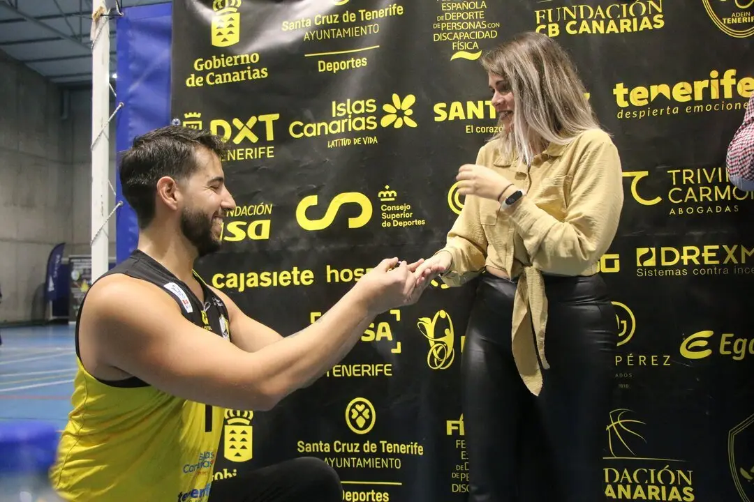 Jugador del Tenerife baloncesto pide matrimonio a su novia tras un partido