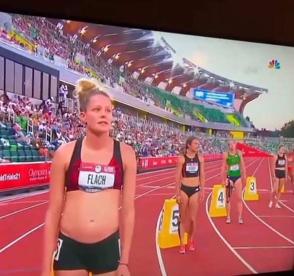 Olvidado el sueño olímpico, Flach se centra en imitar a Alysia Montano, famosa por correr los 900 metros embarazada de 8 meses, algo que parece insuperable.