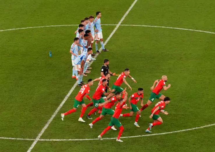 Los marroquíes consiguieron su objetivo y llevaron a España a la lotería de los 11 metros donde, todos los lanzadores españoles que llegaron a tirar, fallaron sus penaltis, siendo el primero Sarabia, que había entrado solo para lanzar el penalti, golpeando en el palo. Luego vino Carlos Soler que fue adivinado por completo por Bono, al igual que Busquets, que acababa el que puede ser su último mundial con un malísimo penalti, flojo y sin colocación, para que Bono lo parase.