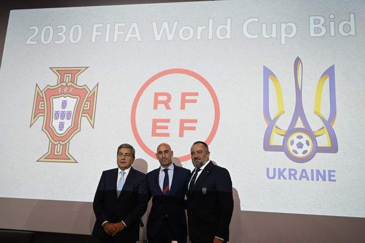 Los presidentes de la Federación Española de Fútbol, la Federación Portuguesa de Fútbol y la Federación Ucraniana de Fútbol presentaron oficialmente en Nyon, la candidatura ibérica para albergar el Mundial 2030