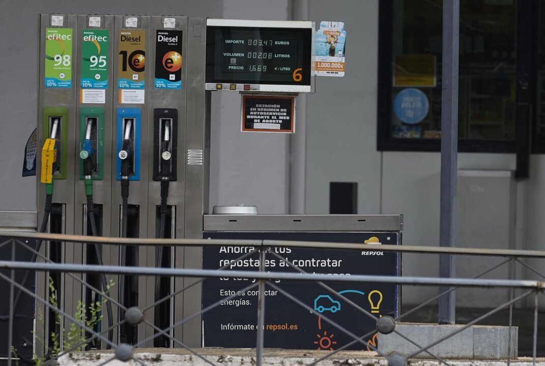 Archivo - Surtidores en una gasolinera, a 31 de agosto de 2024, en Madrid (España). El precio de los carburantes en España ha encadenado esta semana una nueva bajada de cara a la operación retorno de las vacaciones de verano y ha marcado un nuevo mínimo a- Jesús Hellín - Europa Press - Archivo