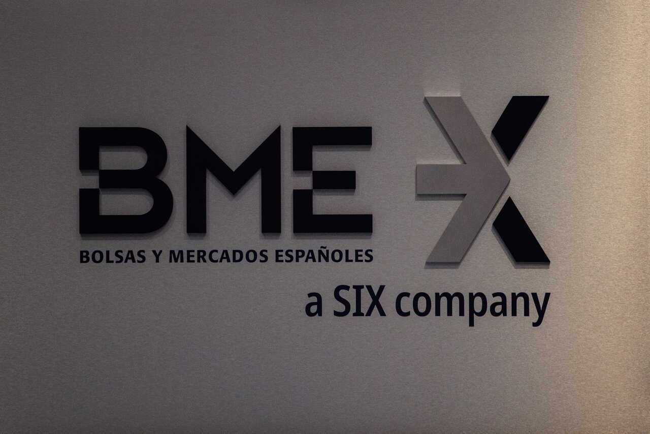 Archivo - Cartel del Instituto BME, en la inauguración de la VI edición del Club Financiero Inspiring Girls, en el Palacio de la Bolsa, a 18 de octubre de 2023, en Madrid (España).