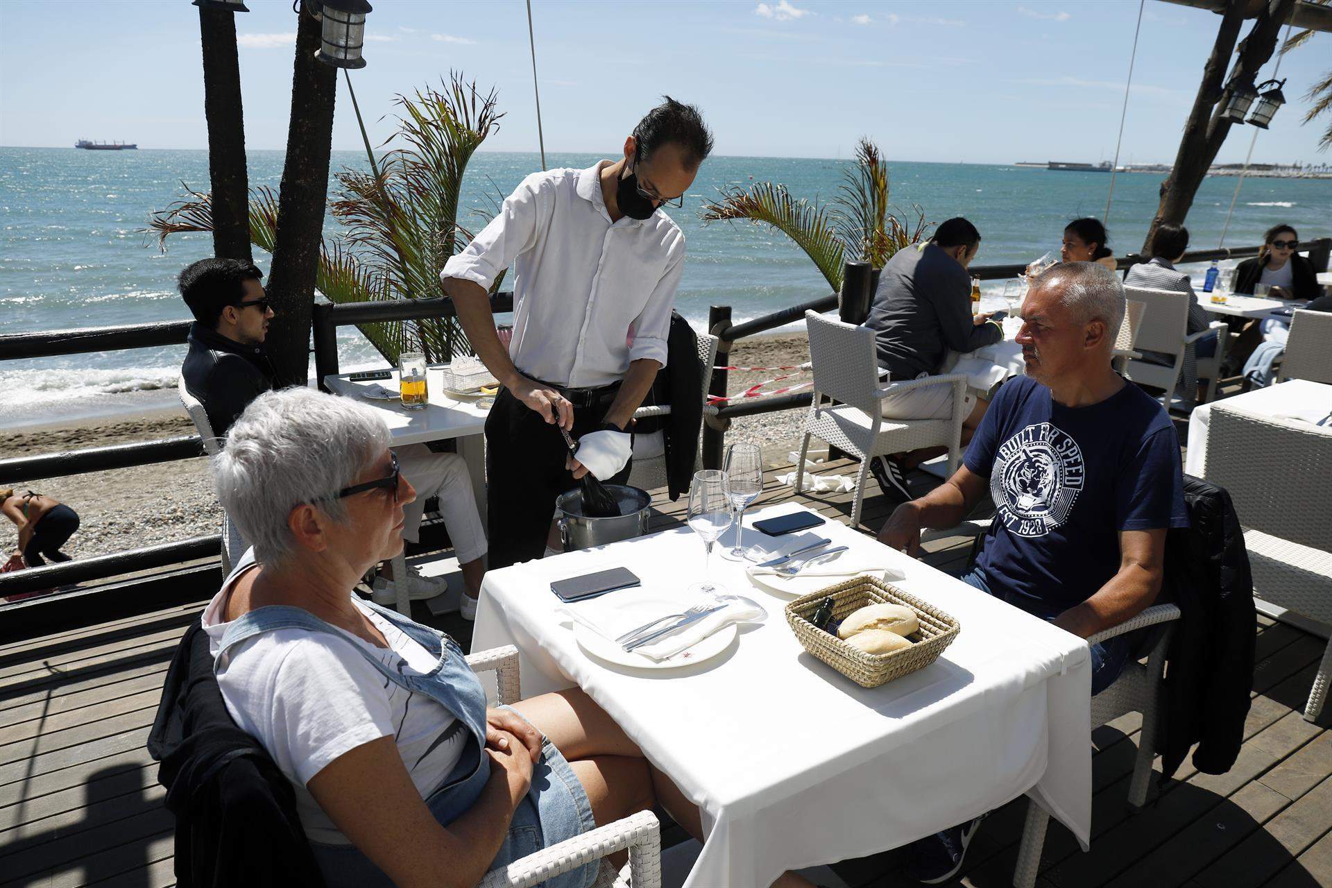 Malagueños y visitantes disfrutan de las playas y los chiringuitos en la imagen la playa de la Malagueta
