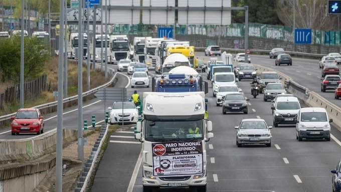 Una serie de camiones en la huelga de transportistas. Fuente: Twitter