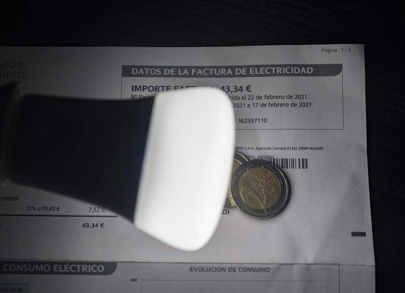Una lámpara refleja el importe de una factura el día en que el precio de la luz ha marcado un mínimo por primera vez en dos meses, a 27 de diciembre de 2021, en Madrid, (España). - Eduardo Parra - Europa Press - Archivo