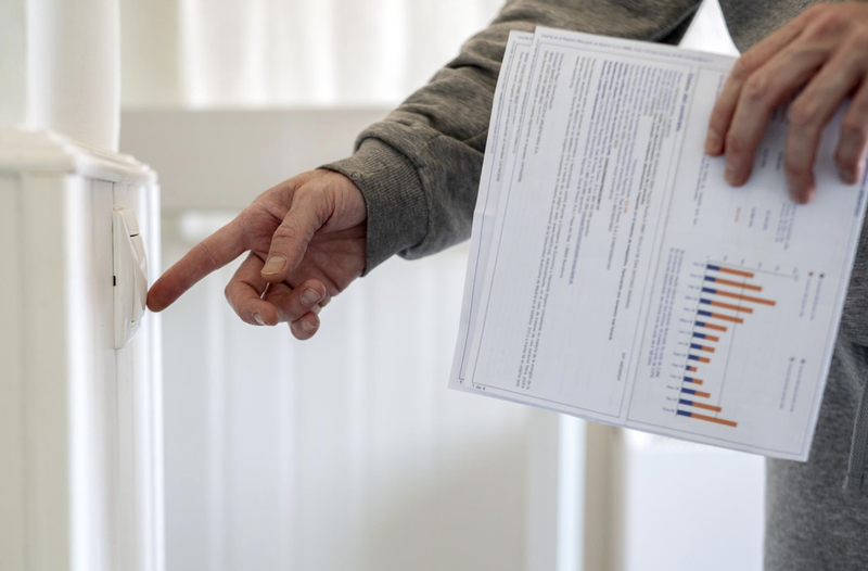 Un hombre enciende un interruptor con una factura de luz en la mano, a 3 de enero de 2022, en Madrid, (España). - Alberto Ortega - Europa Press