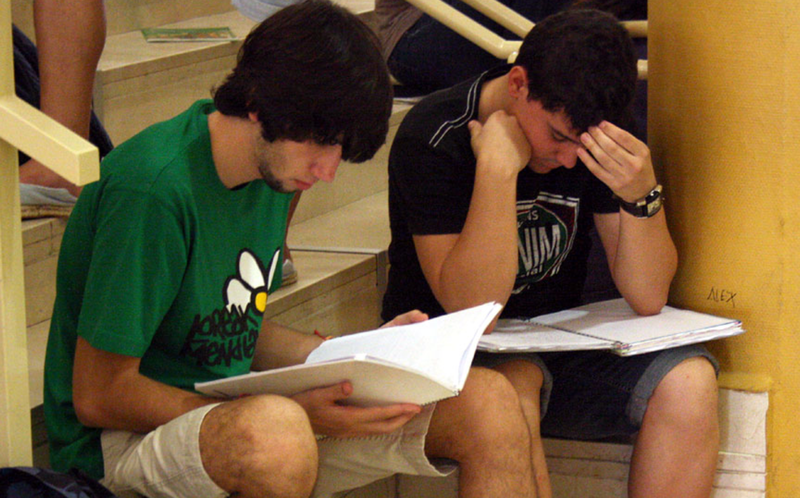 Estudiantes repasan sus apuntes antes de realizar los exámenes.