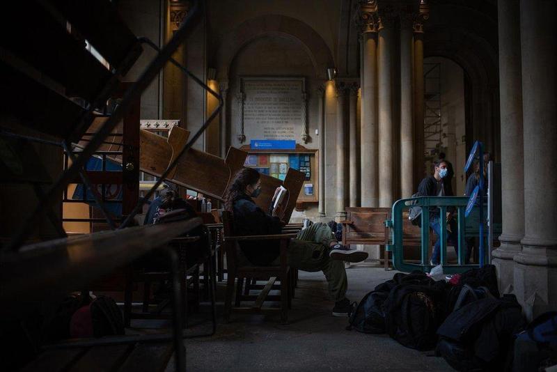 Un centenar de estudiantes ha ocupado este martes el edificio histórico de la Universitat de Barcelona (UB) en la plaza Universitat para exigir a los rectores que firmen el 'Compromiso contra la crisis educativa' lanzado por el movimiento estudiantil en el marco de la pandemia.