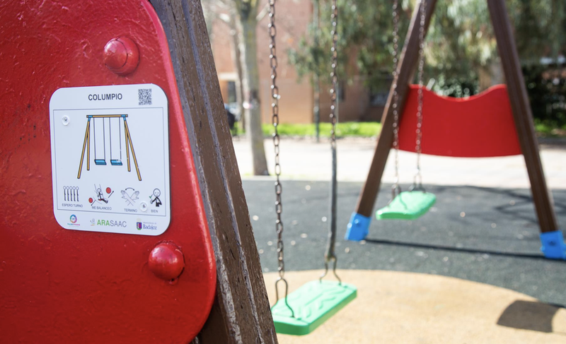 Archivo - Pictograma o placa visual instalada en un parque para niños con espectro autista, en Badajoz, Extremadura (España), a 19 de febrero de 2021. Una serie de pictogramas o placas visuales posibilitarán la plena inclusión de los niños con Trastorno d - JAVIER PULPO - Europa Press - Archivo