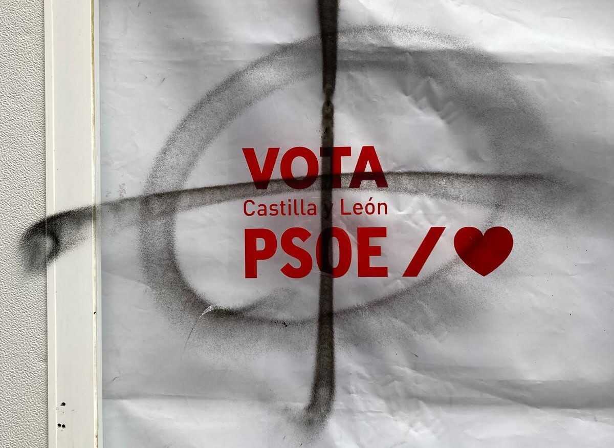 Durante la pasada noche del sábado al domingo, personas aún no identificadas causaron varios daños en la caseta que el PSOE ha instalado en Valladolid como parte de su campaña para las elecciones autonómicas que se celebrarán el próximo 15 de marzo. Además de los daños materiales, el lugar fue objeto de pintadas con símbolos fascistas.