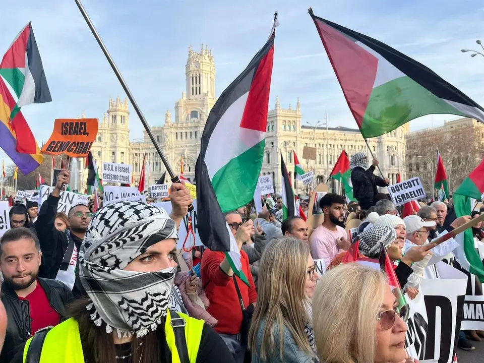 La protesta, convocada por la Asamblea de Madrid con Palestina y apoyadas por más de 180 organizaciones, ha recorrido las calles de Madrid desde las 16 y hasta las 18.30 horas.