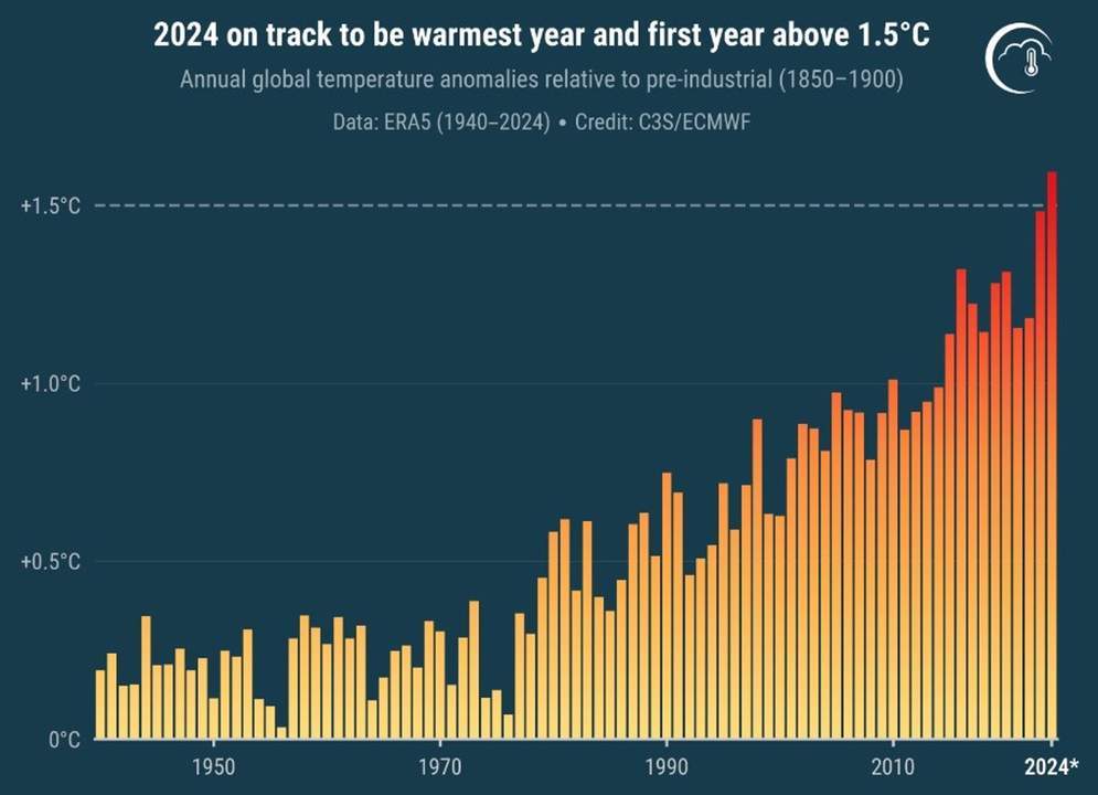 2024 será el año más cálido y primero con anomalía mayor a 1,5 grados