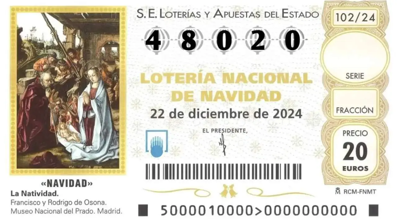 El número 48.020 ha resultado agraciado con el segundo de los dos cuartos premios del Sorteo Extraordinario de Lotería de Navidad, dotado con 200.000 euros a la serie.