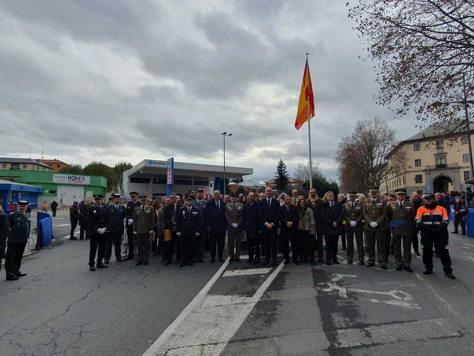 Alrededor de 700 personas han asistido al izado de la bandera de España en el nuevo mástil colocado por el Ayuntamiento en la glorieta de Victoriano Hernando y Palacios, conocida como la de la Pista. El emplazamiento se sitúa en el cruce entre la Base Mixta y el cuartel de la Guardia Civil.