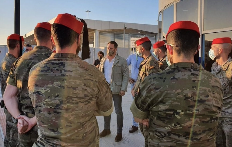 "Los españoles debemos mucho a esa "religión de hombres honrados"", ha destacado el líder de Vox en esta misma publicación, a la que ha adjuntado una foto suya con militares tomada en Algeciras, antes de viajar a Ceuta con motivo de la crisis migratoria del pasado mayo.