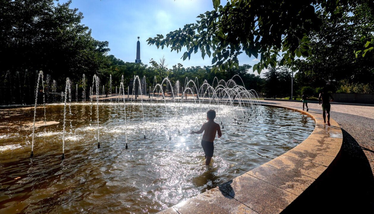 Archivo - Tres niños se refrescan en una fuente durante la tercera ola de calor en Madrid, en el parque Madrid Río, a 3 de agosto de 2024, en Madrid (España).- Ricardo Rubio - Europa Press - Archivo