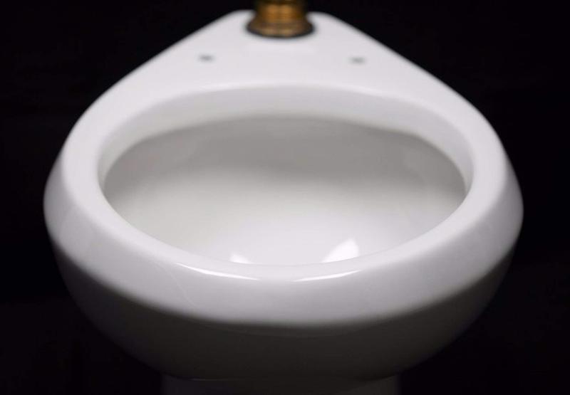 El retrete en sí era del tipo habitual en los baños públicos norteamericanos: una unidad sin tapa acompañada de un mecanismo cilíndrico de descarga -manual o automático- que sobresale por la parte trasera cerca de la pared, conocido como válvula de estilo fluxómetro. El inodoro, nuevo y limpio, se llenaba sólo con agua del grifo.