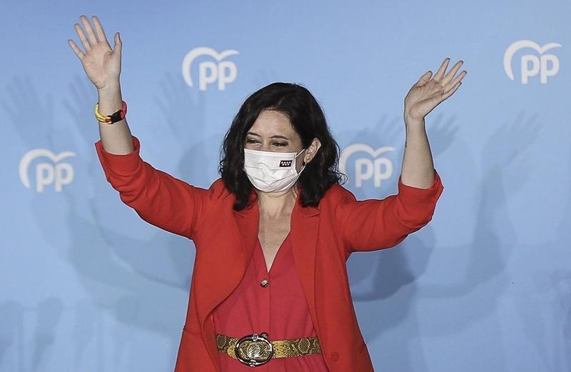 La presidenta de la Comunidad de Madrid, Isabel Díaz Ayuso, en la celebración del PP de este martes tras las elecciones madrileñas. EP