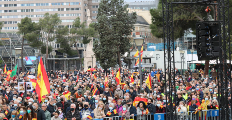 El discurso de la presidenta de AVT vino precedido de los gritos de las personas que se encontraban en la Plaza Colón. Bajo el lema de esta protesta, ‘No todo vale, Gobierno traidor. Justicia para las víctimas del terrorismo’, se podía escuchar algunas recriminaciones hacia el Gobierno. “Basta ya”, “Marlaska dimisión” o “Gobierno traidor” fueron los comentarios más destacados.