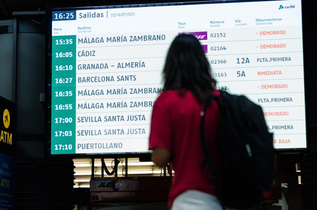 Una persona observa una pantalla informativa en la Estación de Madrid - Puerta de Atocha - Almudena Grandes, a 30 de agosto de 2025, en Madrid- Carlos Luján - Europa Press