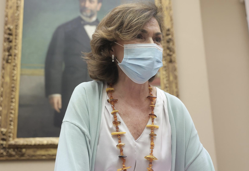La presidenta de la Comisión del Congreso, Carmen Calvo, se ha referido este viernes a la reapertura del debate sobre la Interrupción Voluntaria del Embarazo (IVE) y ha lamentado que en este tema se produzca en medio de un intento de enfrentar a las mujeres y que sea "un paso palante y un paso para atrás".