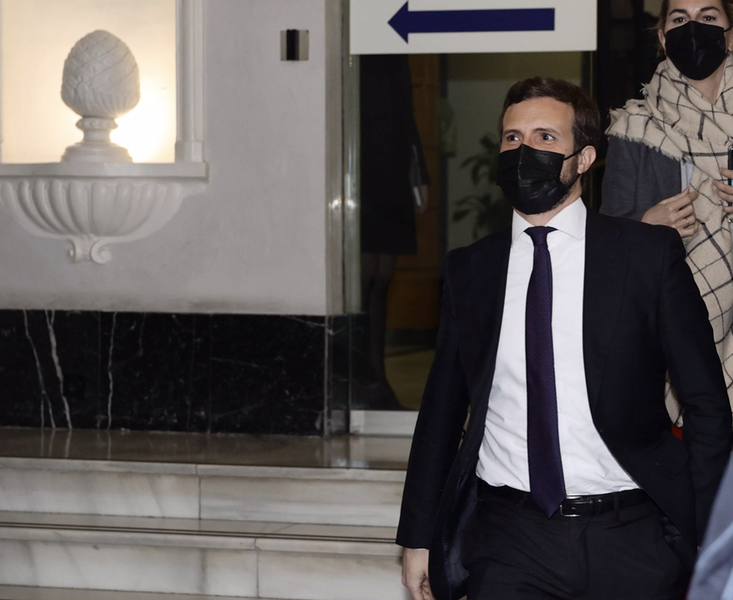 El líder del PP, Pablo Casado, a su salida de una entrevista radiofónica, a 18 de febrero de 2022, en Madrid (España). - Eduardo Parra - Europa Press