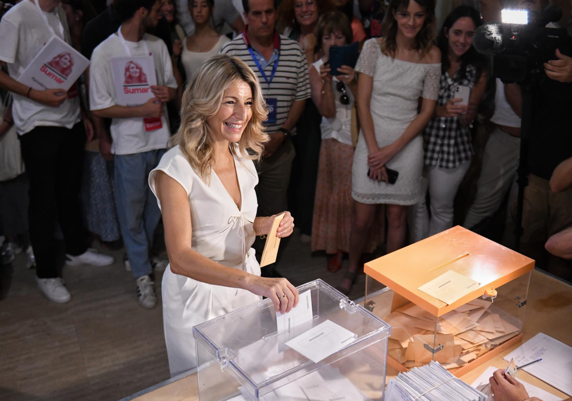 La vicepresidenta segunda y candidata de Sumar a la Presidencia del Gobierno, Yolanda Díaz, ha llamado a la ciudadanía a votar en las elecciones de este 23 de julio porque España "se juega levantarse mañana con más derechos, más democracia y más libertad".