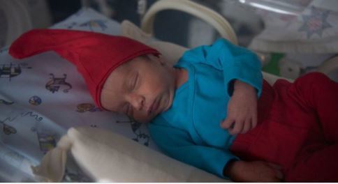 El servicio de Neonatología ha vestido de azul y con un alargado gorro rojo a los bebés de la UCI, la iniciativa de la enfermeras busca romper la monotonía y humanizar el ingreso hospitalario