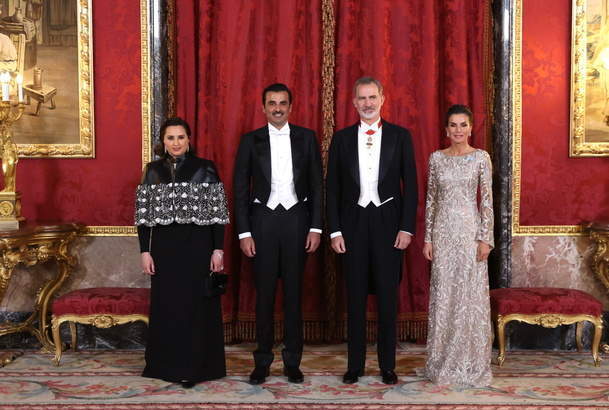 Ayer 17 de mayo, los Reyes Felipe VI y Letizia ofrecieron una cena de gala en honor del jeque Tamim bin Hamad Al Thani, emir del Estado de Catar, y la jequesa Jawaher bint Hamad bin Suhaim Al Thani, con motivo de su visita de Estado a España.