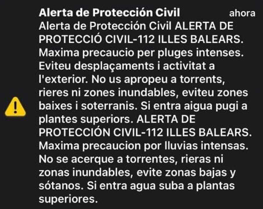 Según han informado desde el Servicio de Emergencias 112 en la red social 'X', en el mensaje 'Es-Alert se pide "máxima precaución" por lluvias intensas a los vecinos de Ibiza y Formentera.